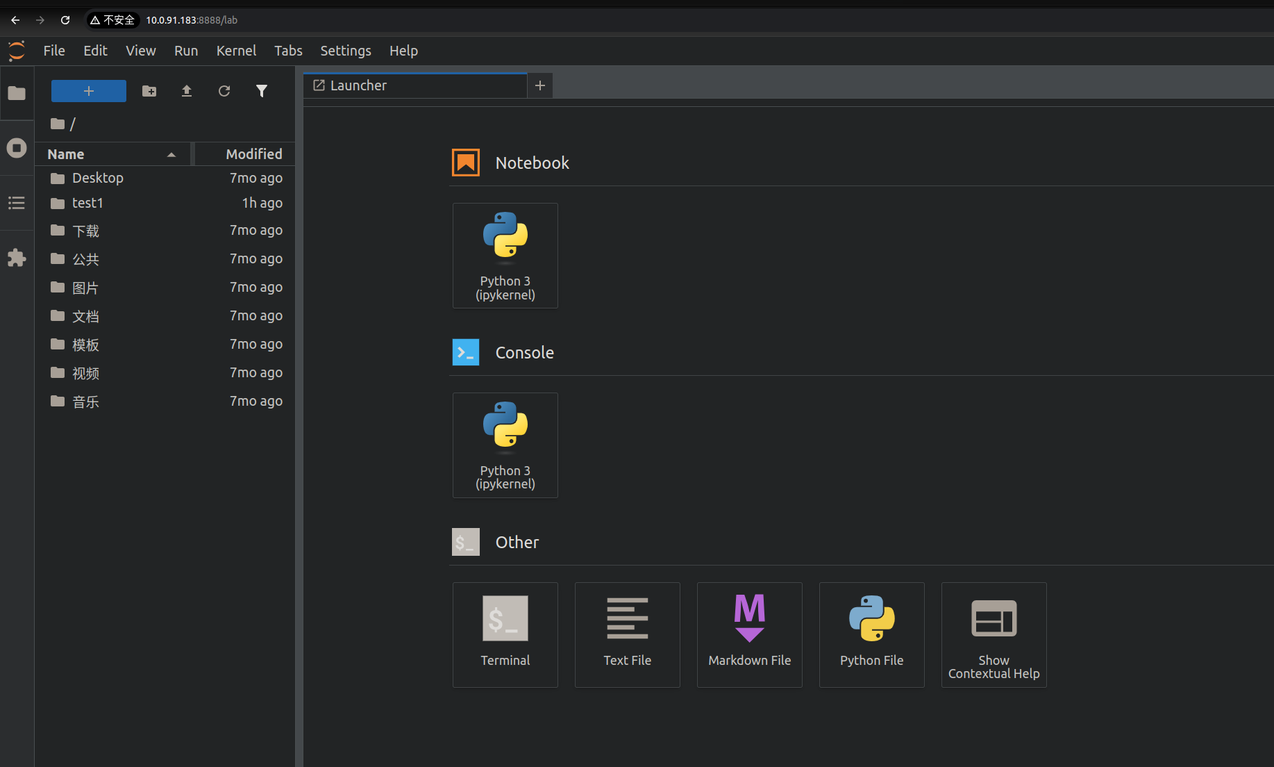 打开你的 x86 主机上的浏览 器,在地址栏粘贴刚刚得到的 http://10.0.91.183:8888/lab?token=1e41eaf84a91a47b00d1c0c2ed3a43632c3999f79d36803c 你将看到如下界面: