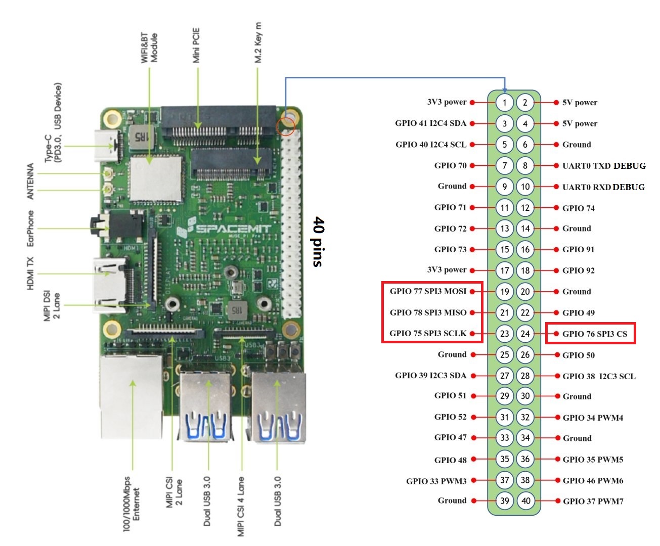 For example, on MUSE-Pi-Pro, supported SPI pins are shown below: