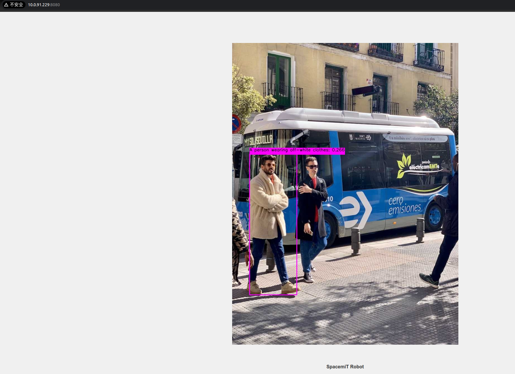 本示例展示如何基于 SpacemiT 智算核,使用图片或视频流作为输入,执行 YOLOE 模型的推理,并通过 ROS 2 发布检测结果。