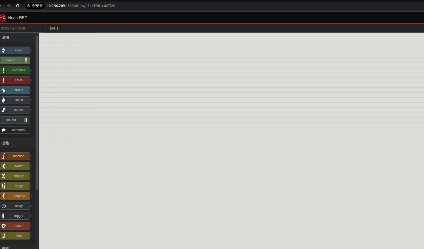 - Includes numerous pre-built nodes: HTTP, MQTT, WebSocket, file system, function processing, etc.